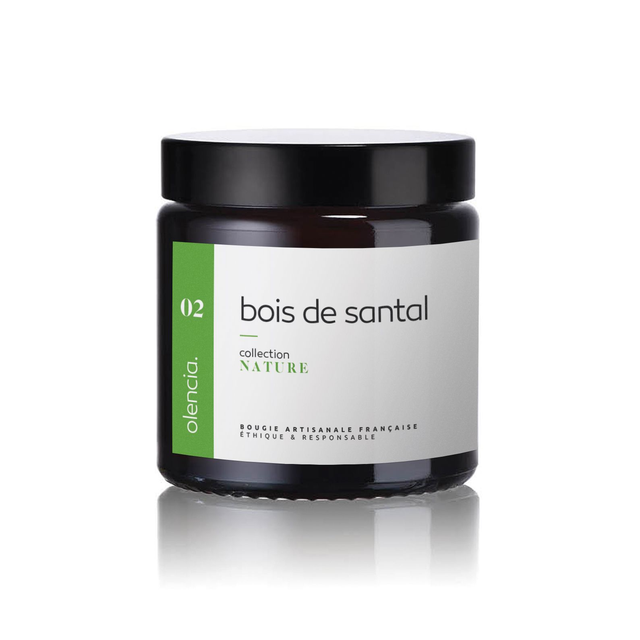 Un parfum boisé et chaleureux aux essences de bois de santal avec ses notes de cèdre, de fève tonka et de musc. /// 90 gr (env. 25h)